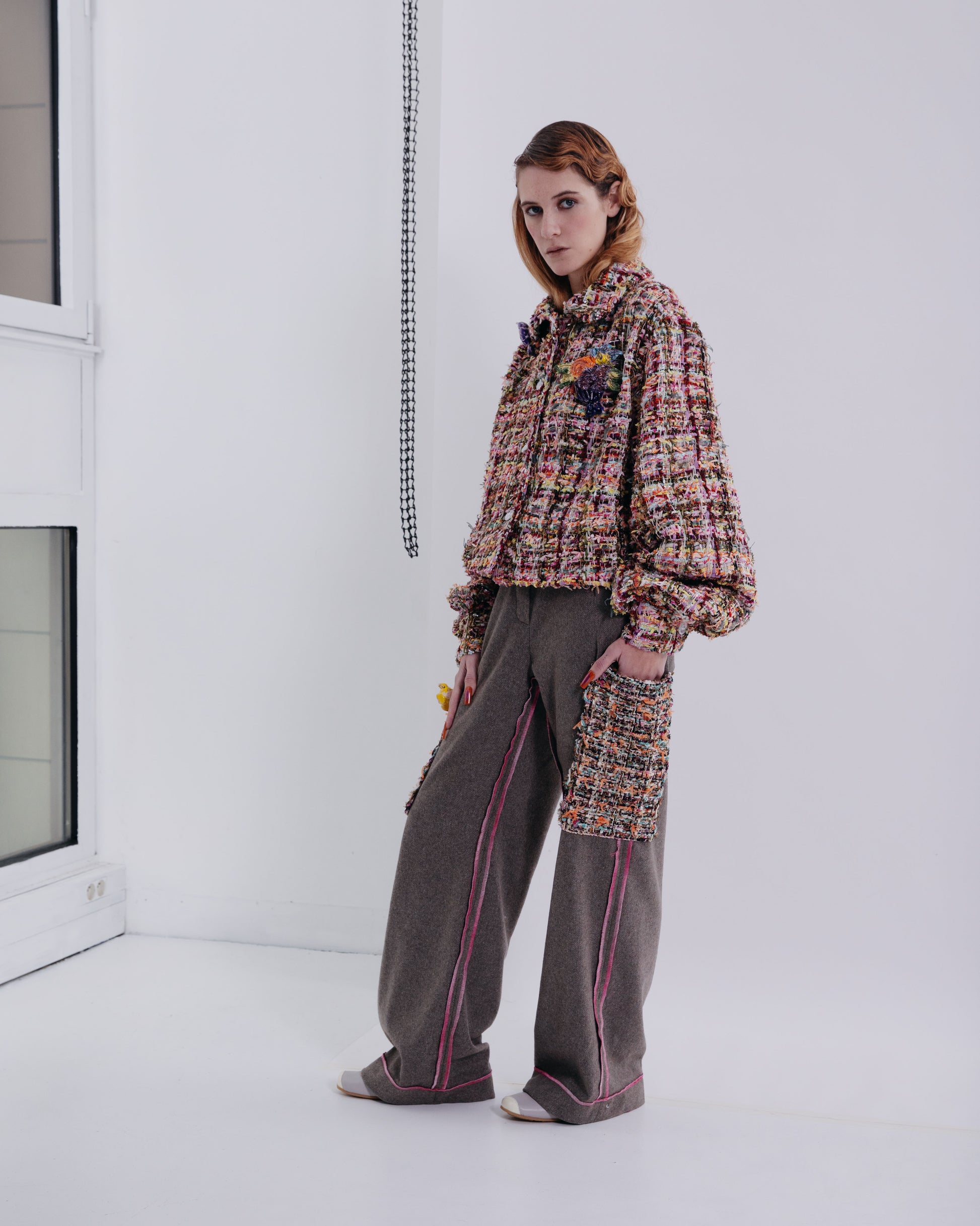 4 Handwoven tweed pockets using deadstock fancy yarn
